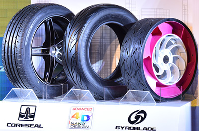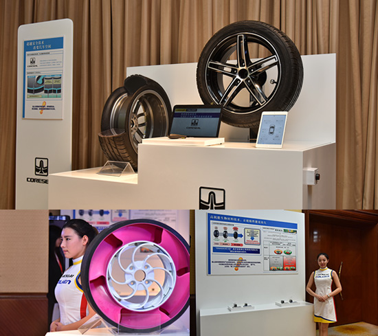 住友橡膠積極實(shí)踐“無(wú)備胎化”的節(jié)能理念,不斷推進(jìn)技術(shù)革新,研發(fā)出了非充氣輪胎和密封膠輪胎,實(shí)現(xiàn)了車輛的輕量化和空間最大利用化效果。非充氣輪胎技術(shù)“GYROBLADE”將金屬輪轂,特殊樹脂輪輻和橡膠胎面巧妙結(jié)合,實(shí)現(xiàn)了不需要填充空氣也能滿足行駛性能需求的技術(shù)。既避免了普通輪胎保養(yǎng)維護(hù)的負(fù)擔(dān),也為消費(fèi)者提供多種色彩選擇,大大提升駕駛時(shí)尚感。密封膠輪胎技術(shù)“CORESEAL”在輪胎內(nèi)壁涂抹特殊材質(zhì)密封膠,當(dāng)輪胎遭遇異物刺入也能確保不漏氣,大大提升了輪胎的安全性能。