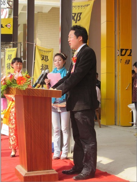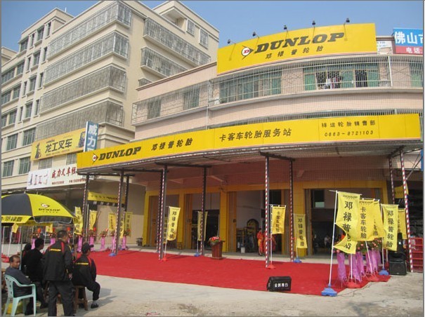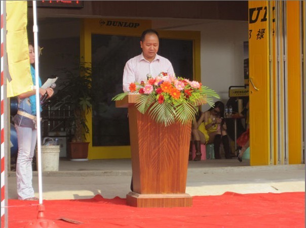 ??????? 2010年11月9日,揭陽市祥運輪胎銷售部,作為鄧祿普卡客車輪胎在全國范圍內(nèi)的第三家旗艦店,舉行了非常盛大的開業(yè)剪彩儀式.住友橡膠(常熟)有限公司企劃營業(yè)部津崎正浩部長,鄧祿普卡客車輪胎廣東省,湖南省,海南省(三省)總代理商東莞市匯福輪胎有限公司總經(jīng)理王連富先生等貴賓參加了此次的開業(yè)慶典.