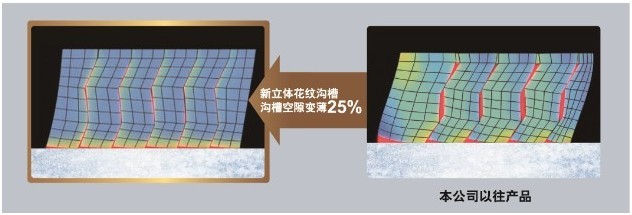 冬季行駛中的冰、雪路面在WINTER MAXX的面前已是如履平地,而它的縱向溝槽設(shè)計(jì)則為你解決了排水的問題。縱向溝槽的容積增加40%之后,排水的量也大大的提升了,同時(shí)也提升了在冰沙路面上行駛操控性能。還未入冬,你的愛車即可提早換上WINTER MAXX,為迎接冰雪挑戰(zhàn)提早做好準(zhǔn)備。
