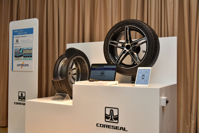 住友橡膠積極實踐“無備胎化”的節(jié)能理念,不斷推進(jìn)技術(shù)革新,研發(fā)出了非充氣輪胎和密封膠輪胎,實現(xiàn)了車輛的輕量化和空間最大利用化效果。非充氣輪胎技術(shù)“GYROBLADE”將金屬輪轂,特殊樹脂輪輻和橡膠胎面巧妙結(jié)合,實現(xiàn)了不需要填充空氣也能滿足行駛性能需求的技術(shù)。既避免了普通輪胎保養(yǎng)維護(hù)的負(fù)擔(dān),也為消費者提供多種色彩選擇,大大提升駕駛時尚感。密封膠輪胎技術(shù)“CORESEAL”在輪胎內(nèi)壁涂抹特殊材質(zhì)密封膠,當(dāng)輪胎遭遇異物刺入也能確保不漏氣,大大提升了輪胎的安全性能。
