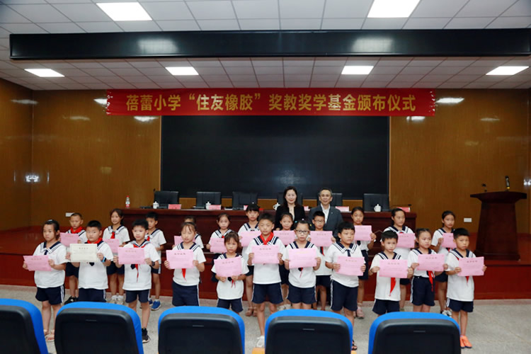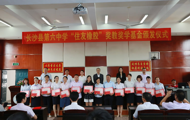 住友橡膠于2015年創(chuàng)立“住友橡膠獎教獎學基金”,用于獎勵學校優(yōu)秀師生,今年已經是第五年。今年住友橡膠(湖南)有限公司首創(chuàng)“住友橡膠獎教獎學基金“,湖南公司總經理舩原先生在頒獎致辭中表示:“獎教獎學基金的設立,旨在鼓勵潛心教學,精心培育青少年的各位老師,以及獎勵奮發(fā)努力、品學兼優(yōu)的各位同學”。長沙蓓蕾小學和長沙縣第六中學負責人代表兩校師生,向住友橡膠(湖南)有限公司對發(fā)展當地教育事業(yè)提供的支持及幫助表達了由衷的感謝。