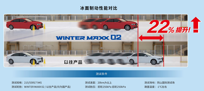 另外一款WINTER MAXX 02冬季胎適用于各類乘用車,采用4D創(chuàng)新納米級設(shè)計、研發(fā)出的“超密著納米百適橡膠”,使橡膠更能密著于凍結(jié)路面的細(xì)微凹凸,更貼合路面,帶來更有效的制動。新優(yōu)化開發(fā)的“MAXX銳鋒胎面花紋”,將片狀花紋數(shù)量增加17%,增加抓地力,進一步強化了冰凍路面的制動性能。同時“MAXX銳鋒技術(shù)”通過設(shè)置相互貫通的橫向溝槽,保證花紋塊的剛性,提升了抓雪、壓雪、排雪的能力,大幅提升冰面制動性能及雪上、冰沙路面性能,輕松駕馭冰雪前路。該項產(chǎn)品推出了36個規(guī)格,涵蓋14~19寸輪胎,以滿足乘用車市場的不同需求。