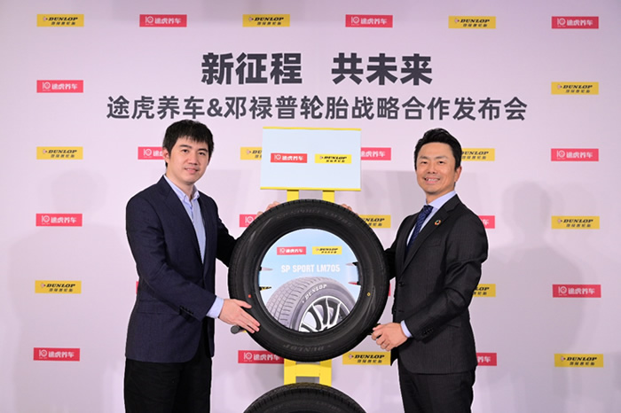 左:途虎養(yǎng)車創(chuàng)始人兼CEO陳敏、右:鄧祿普輪胎銷售有限公司董事長(zhǎng)德毛裕司
