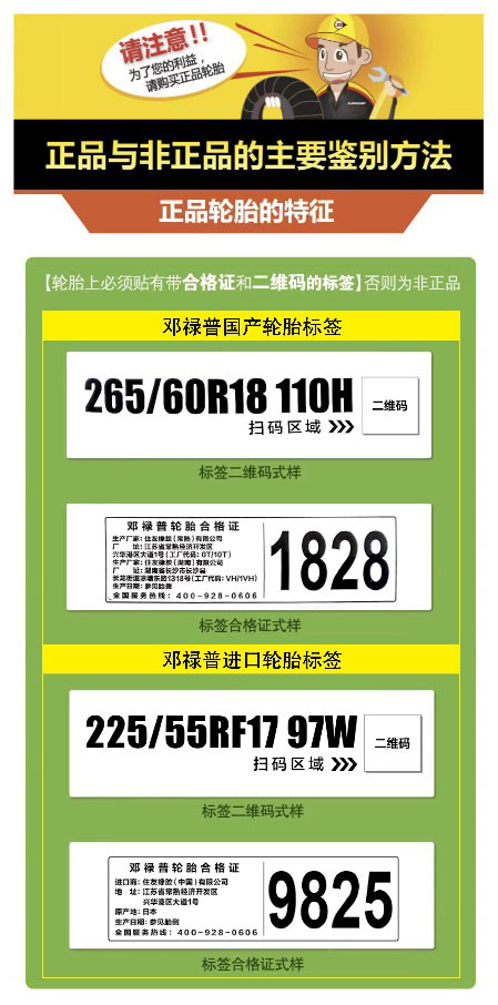 如您選擇購買鄧祿普輪胎時,您可以通過以下方式驗證鄧祿普輪胎的真?zhèn)巍?/strong>