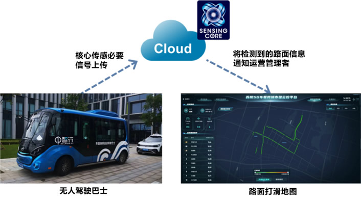 蘇州市相城區(qū)作為長三角地區(qū)重要的交通樞紐,近年來經(jīng)濟發(fā)展迅速,智慧城市建設(shè)如火如荼,除無人駕駛巴士和出租車外,還有無人配送車、無人清潔車等600多輛無人駕駛車輛已投入示范應(yīng)用。 在這項舉措中,由在示范區(qū)內(nèi)運行的無人駕駛巴士將車輛信息(如核心傳感所需的車輪速度信號)傳輸?shù)较葘?dǎo)(蘇州)數(shù)字產(chǎn)業(yè)投資有限公司管理的智能網(wǎng)聯(lián)云控平臺。 檢測到的路面信息將以 "路面打滑地圖 "等形式在云控平臺上呈現(xiàn)給運營管理者,用于安全可靠的運營管理。 此外,通過“核心傳感”掌握車輛重量和輪胎狀態(tài),將在高效運行管理、輪胎自動檢測、提高輪胎生命周期等方面創(chuàng)造新的價值。