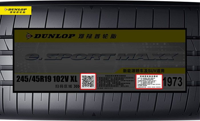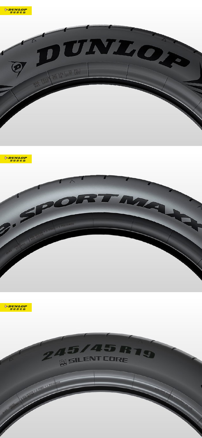 3.鄧祿普輪胎胎側(cè)有清晰的“DUNLOP” logo、輪胎規(guī)格、花紋等相關(guān)信息。