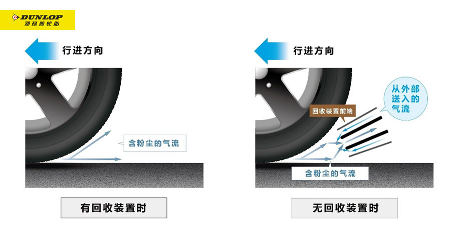 針對TRWP擴(kuò)散階段,住友橡膠與德國東法利亞應(yīng)用科學(xué)大學(xué)空氣動力學(xué)專家Falk Klinge教授合作,開發(fā)出一種利用車輛行駛中氣流變化的TRWP回收裝置。該裝置可通過引導(dǎo)輪胎周邊氣流,有效捕集因摩擦產(chǎn)生的微細(xì)顆粒。