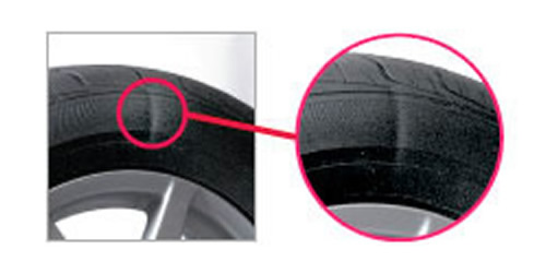 ● 傷及鋼絲簾線或發(fā)生橡膠破裂的輪胎非常危險,不能再使用。立即咨詢專業(yè)銷售點進行檢查